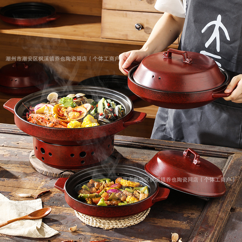 ホテル専用陶磁器二色土鍋明火高温広口シチュー鍋浅鍋カード式炉専用特色食器