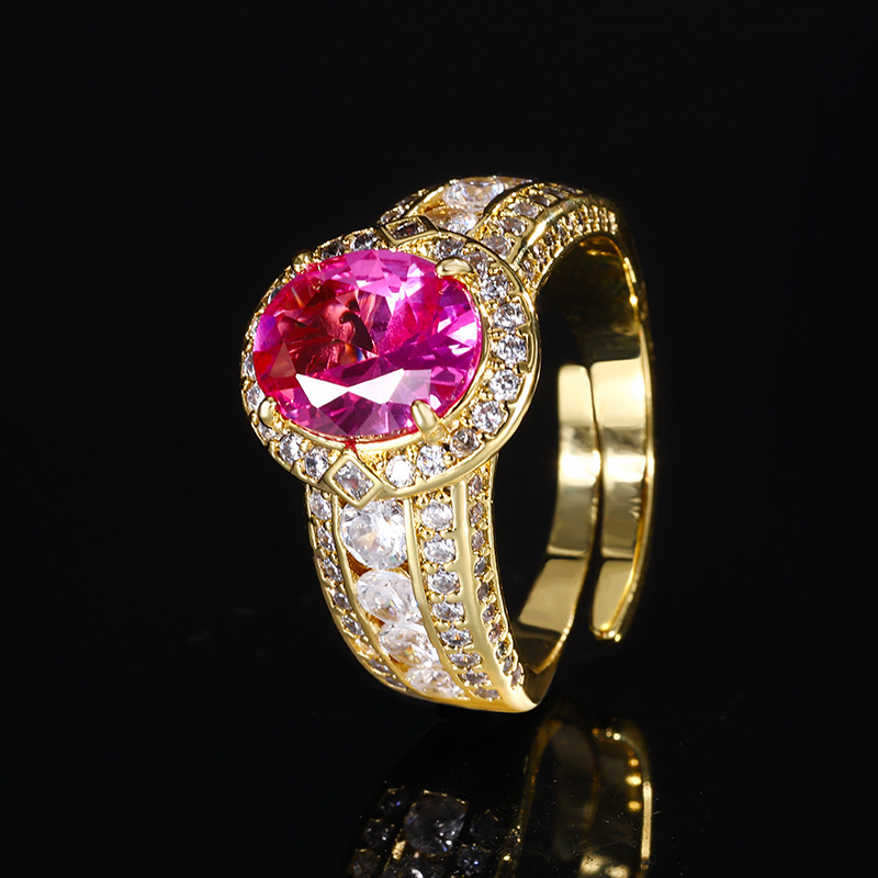 2024新型庄生宝飾品銅底金メッキ欧米シミュレーション彩宝コランダム金指輪女8*10卸売り