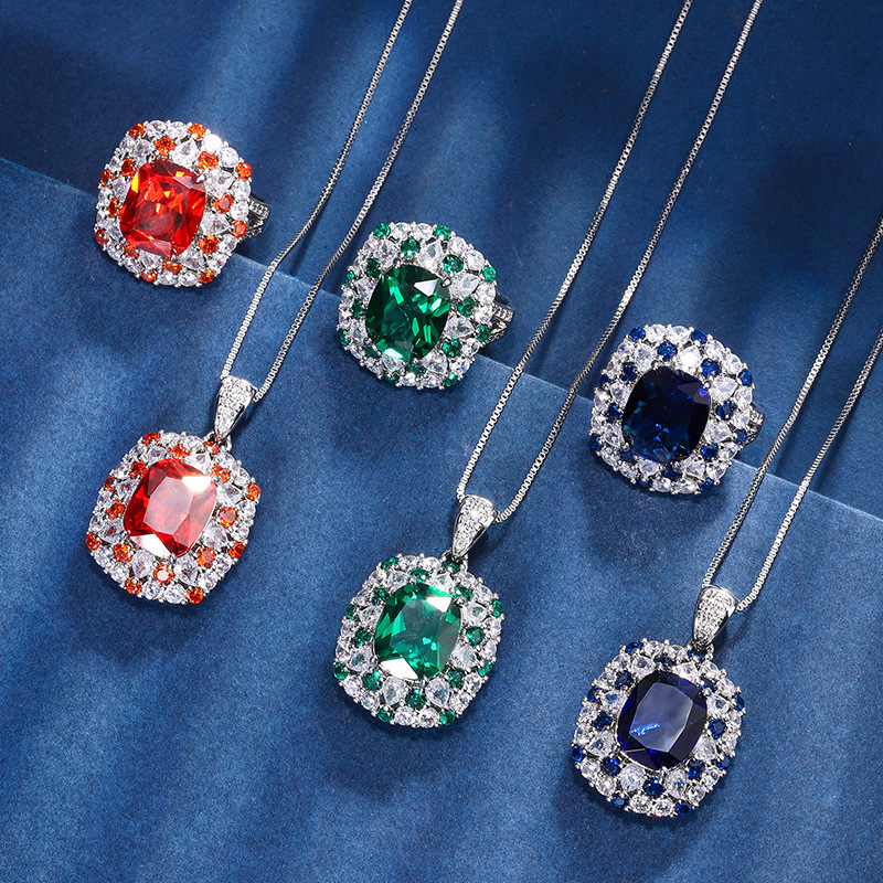 华碧珠宝铜底镀金首饰套装仿真彩宝款肥方彩钻套装女主石10*12