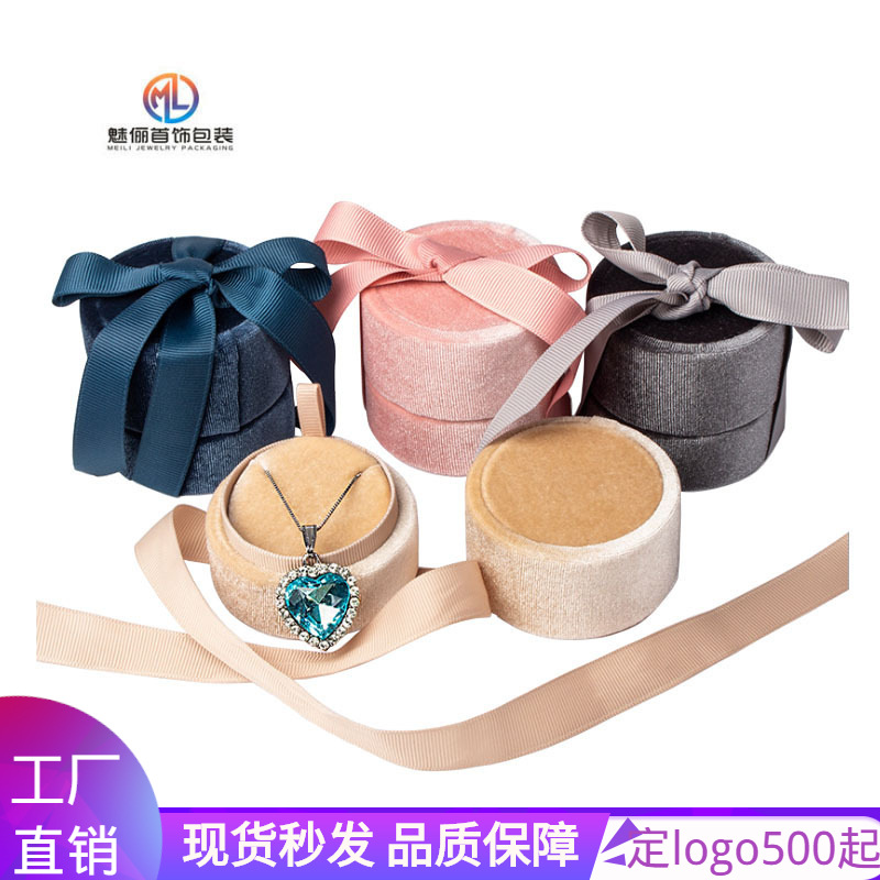 スポット韓国ベルベット円形指輪ペンダントアクセサリー箱天地蓋リボンベルベットジュエリーアクセサリー箱定ロゴ