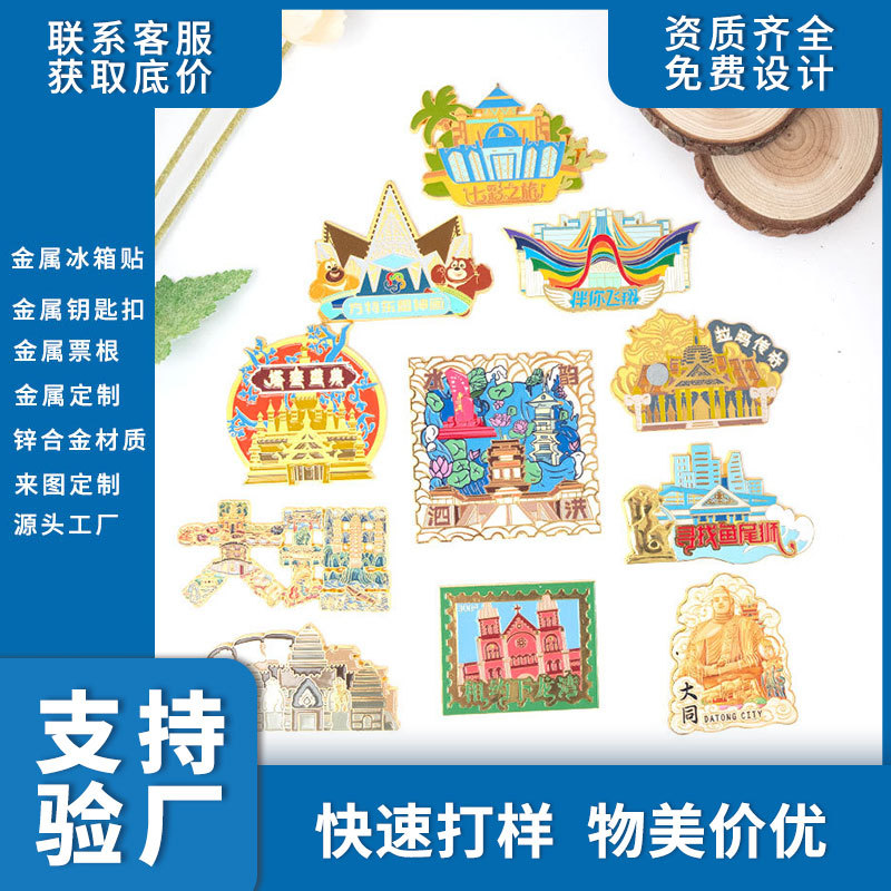 金属製冷蔵庫用マグネット、カスタマイズされた都市の風景、周辺の観光名所、会社のイベントのお土産、ギフト、カスタマイズされたマグネット