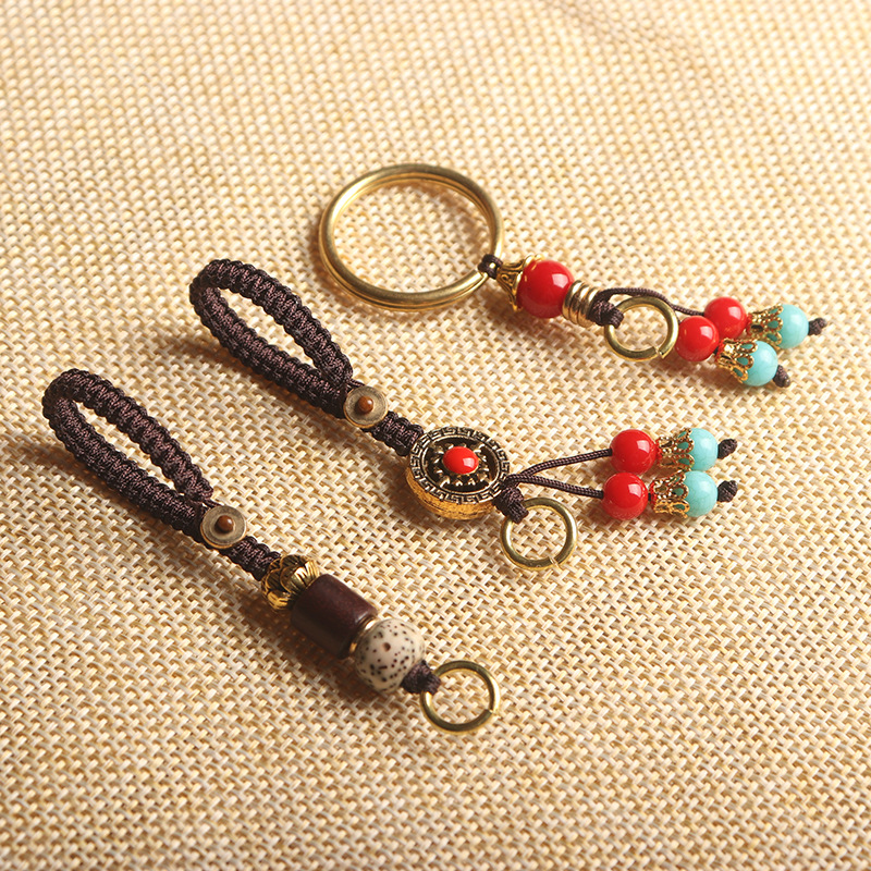 平結び手作り編みひも自動車キーホルダー真鍮彫刻ストラップアクセサリー中国風平安結びストラップ