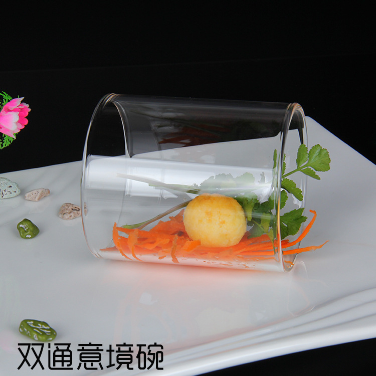 高ホウケイ酸ガラスボウル、両端が空の円筒、創造的なホテル用品、食器、テーマレストラン、耐熱性