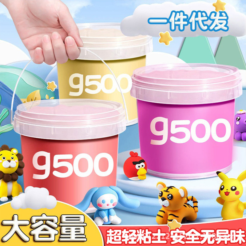 超軽量粘土500g卸売り桶装収納児童彩泥粘土幼稚園手作りdiy玩具大包装