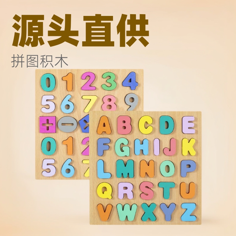 メーカー直販木製数字アルファベット幼児形状認知手掴み板赤ちゃんジグソーパズル早教玩具