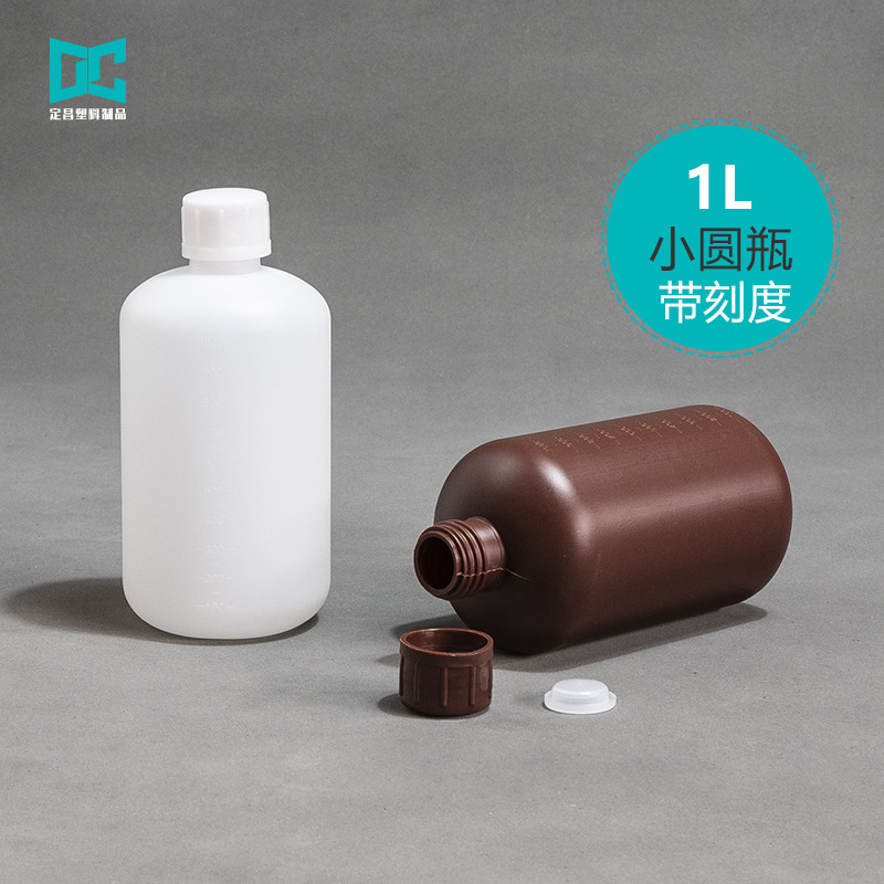 1l耐腐敗性化学工業大口プラスチックボトルを厚くした角型固体粉末液体試薬をペットボトルに分けて防犯歯を持っている
