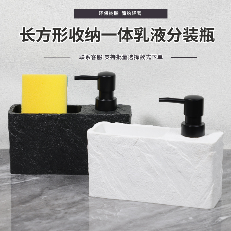 家用厨房洗洁精分装瓶岩石纹洗碗剂液按压瓶洗碗槽海绵收纳盒跨境