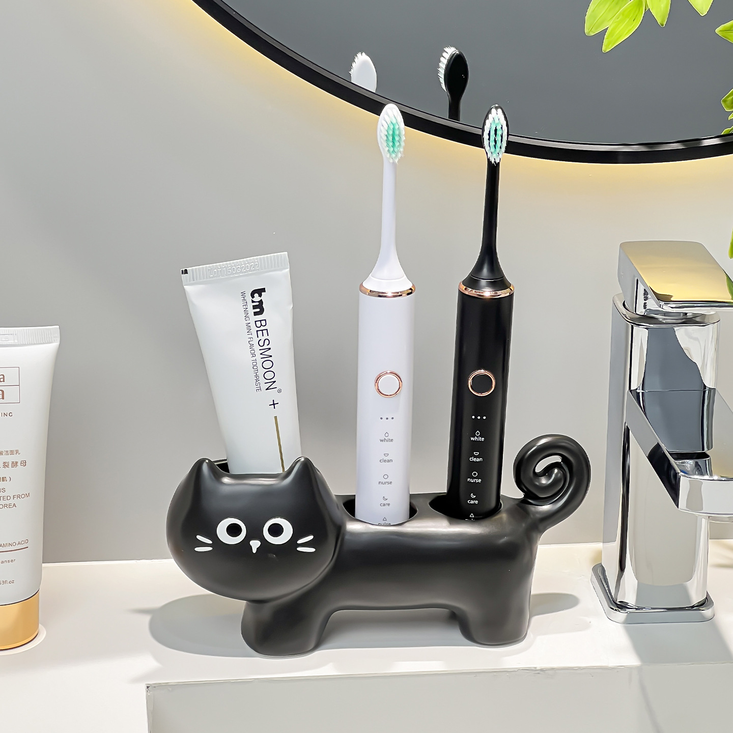 趴趴猫陶瓷电动牙刷架子置物架情侣牙膏放置洗漱台面底座支架座托