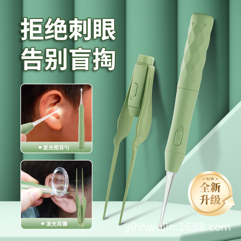 厂家现货发光耳勺套装带灯挖耳勺镊子宝宝可视掏耳勺采耳工具套装