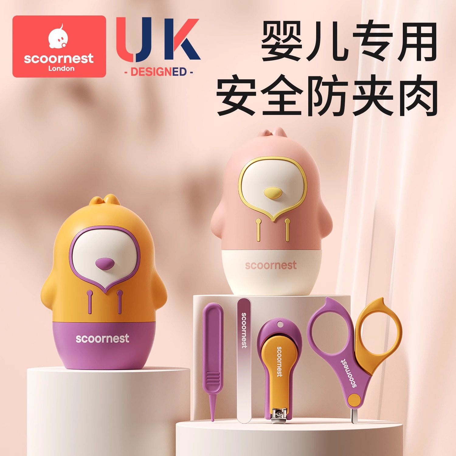 科巢婴儿指甲剪套装神器宝宝安全剪刀新生专用幼儿童防夹肉指甲钳