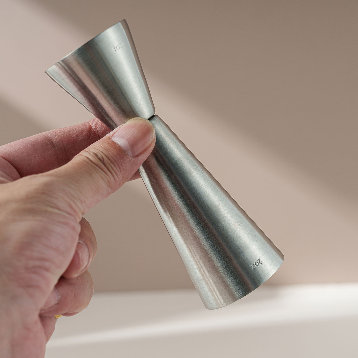 直線型ステンレス製計量カップ、目盛り付き両口カップ、30/60オンス、カクテルバー用バーテンダーツール、計量カップ