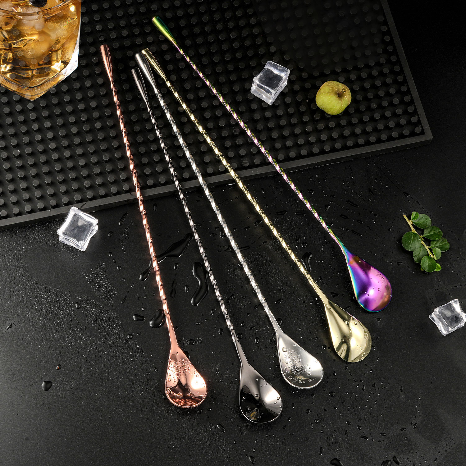 工厂供应不锈钢泪滴搅拌棒调酒用水滴吧勺304材料颜色可选 调酒勺