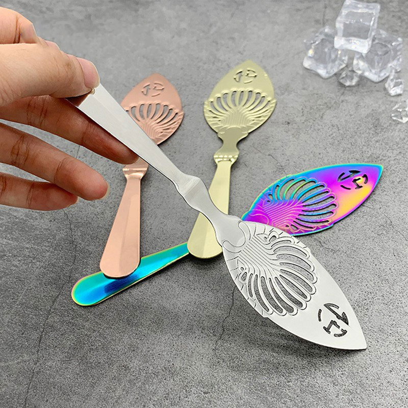 国境を越えた和風 304 ステンレス鋼中空ビターディッチスポーンバーバーテンダーフィルタースプーン角砂糖フィルターアルコールスプーン