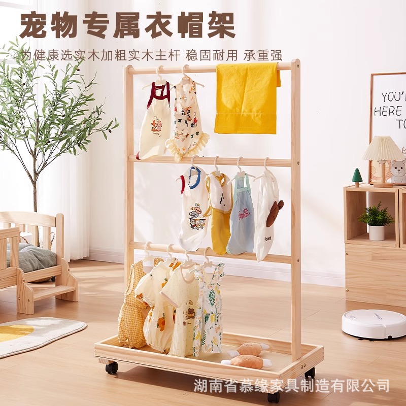 ペットの服の帽子の棚の犬の床のハンガーの木製のハンガーは猫の専用のタンスの服の収納棚を移動します。