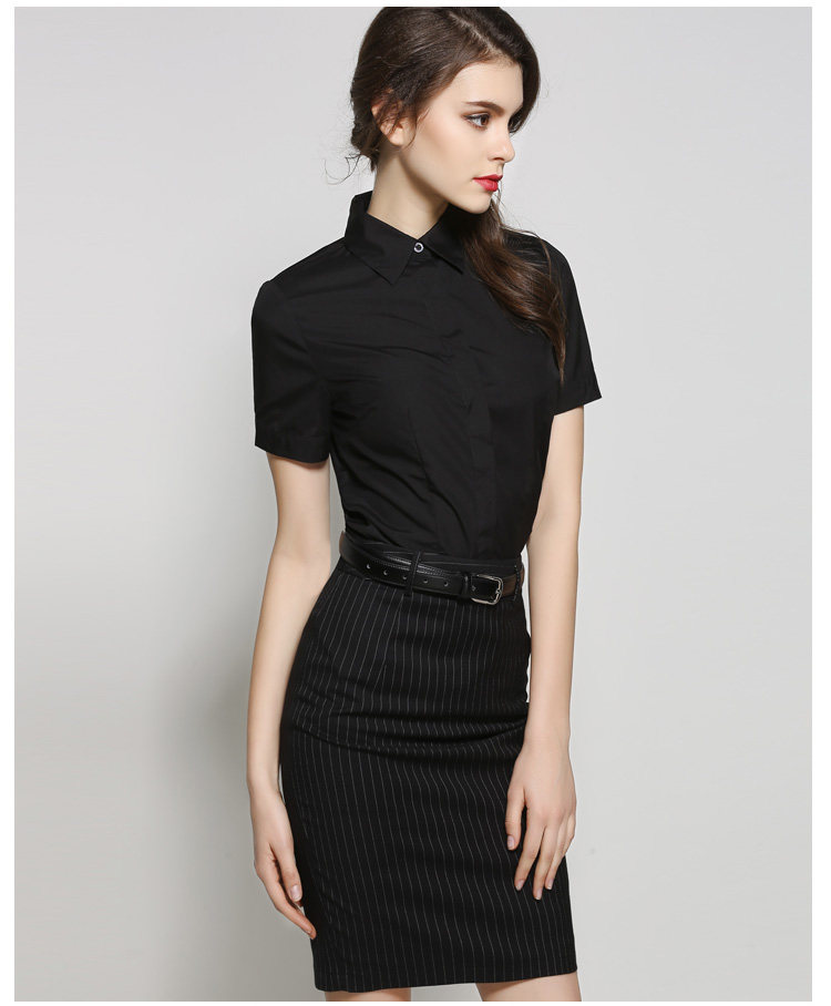 黒いシャツの女性の長袖の職業は秋冬の新型の修身とベルベットのシャツの保温作業服の綿の気質がやせていることを現します。
