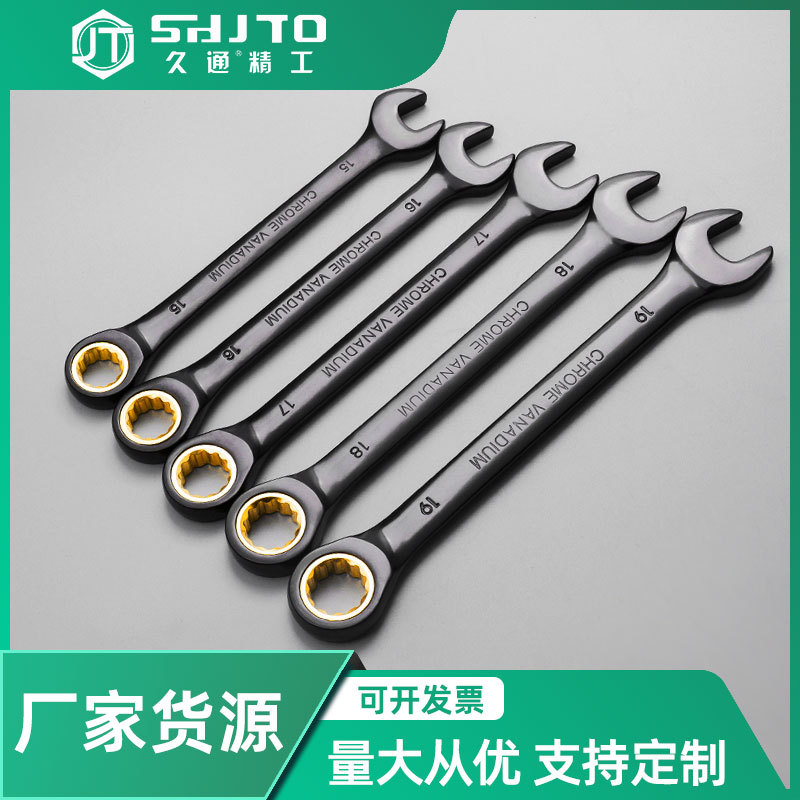 メーカー直販メートル72歯黒金色ラチェットレンチ固定頭梅開口両用快速レンチ
