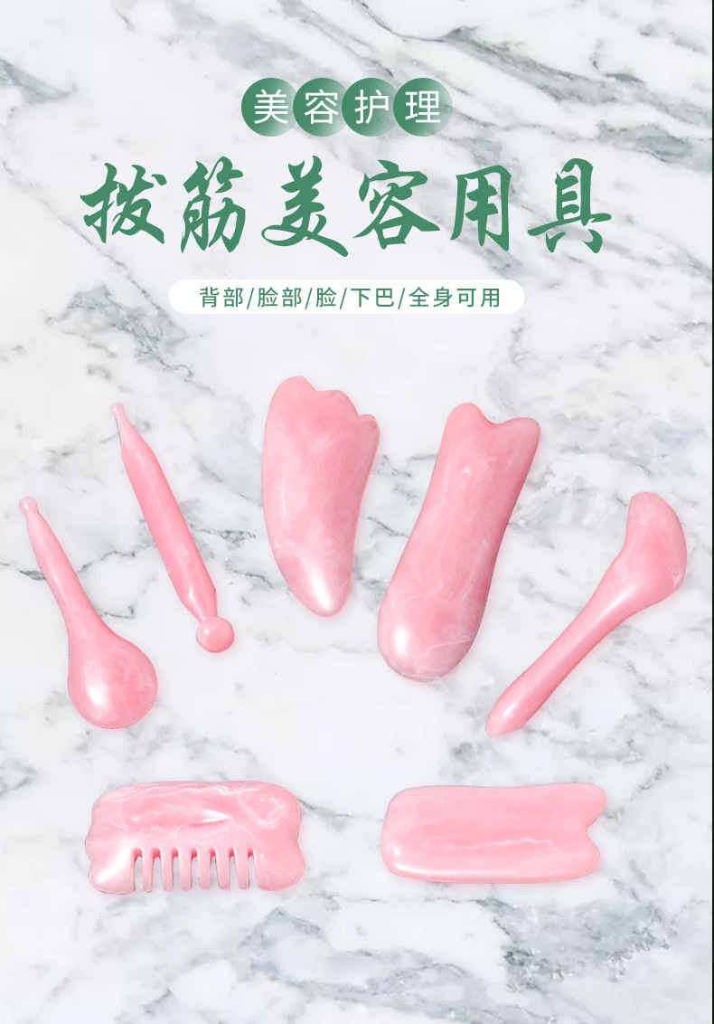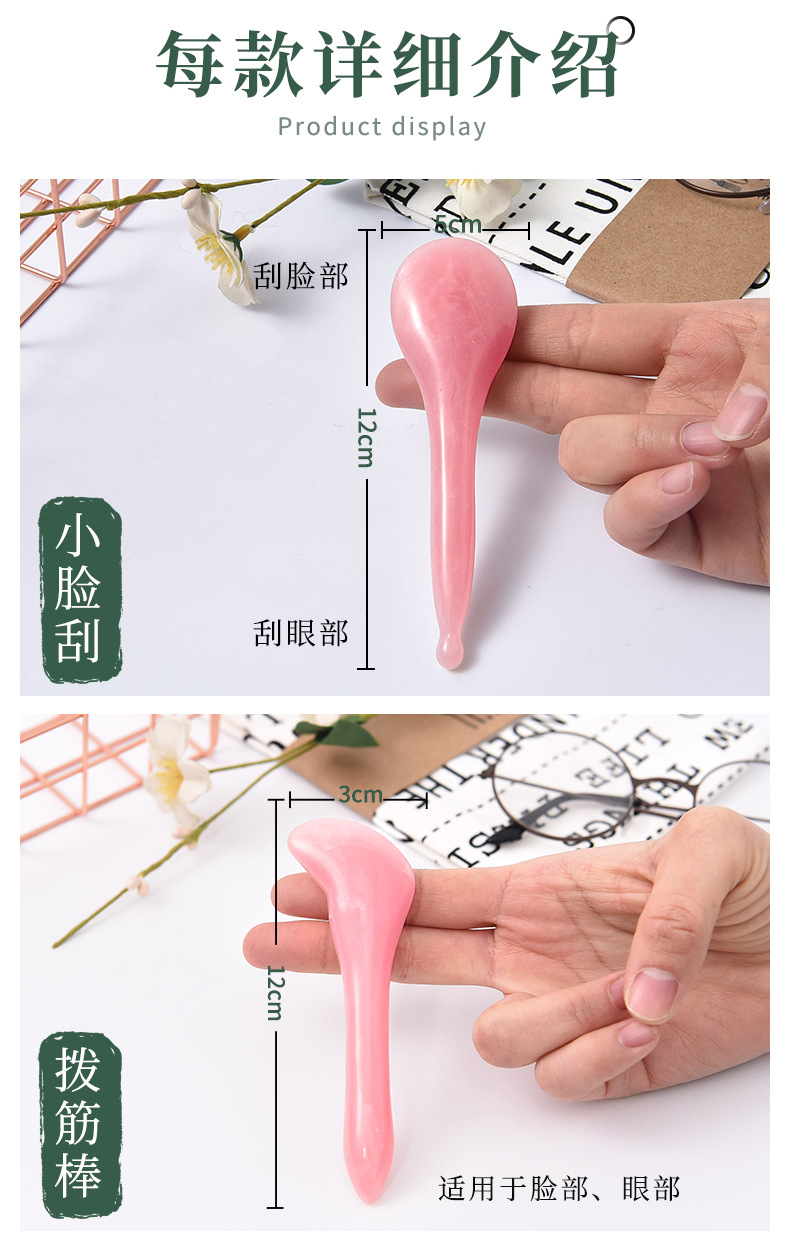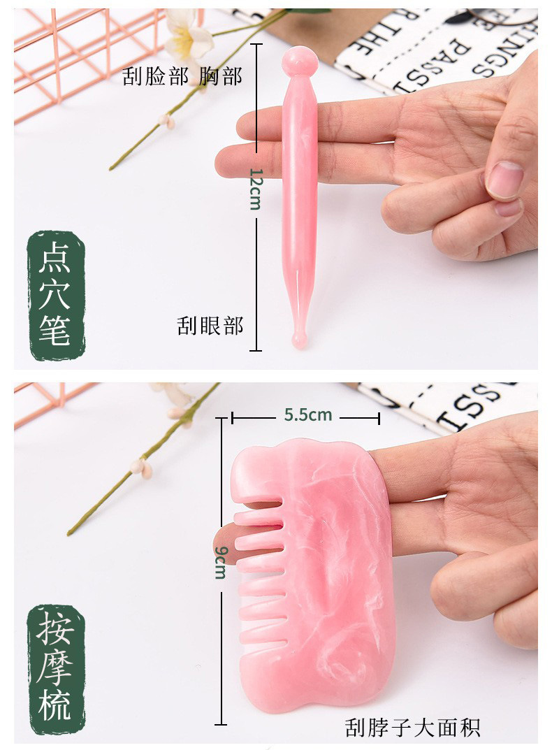 筋肉ほぐし棒 女性用フェイスマッサージ棒 全身用 非牛角 ピンククォーツ マッサージプレートセット 経絡ツボペン 理学療法ツボ健康器具
