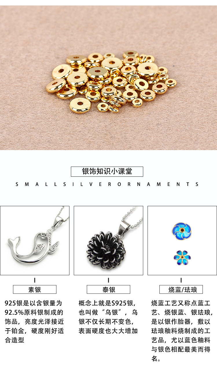 S925純銀水泡珠車輪円環珠金メッキ隔珠平珠計数銀珠アクセサリー散珠アクセサリー
