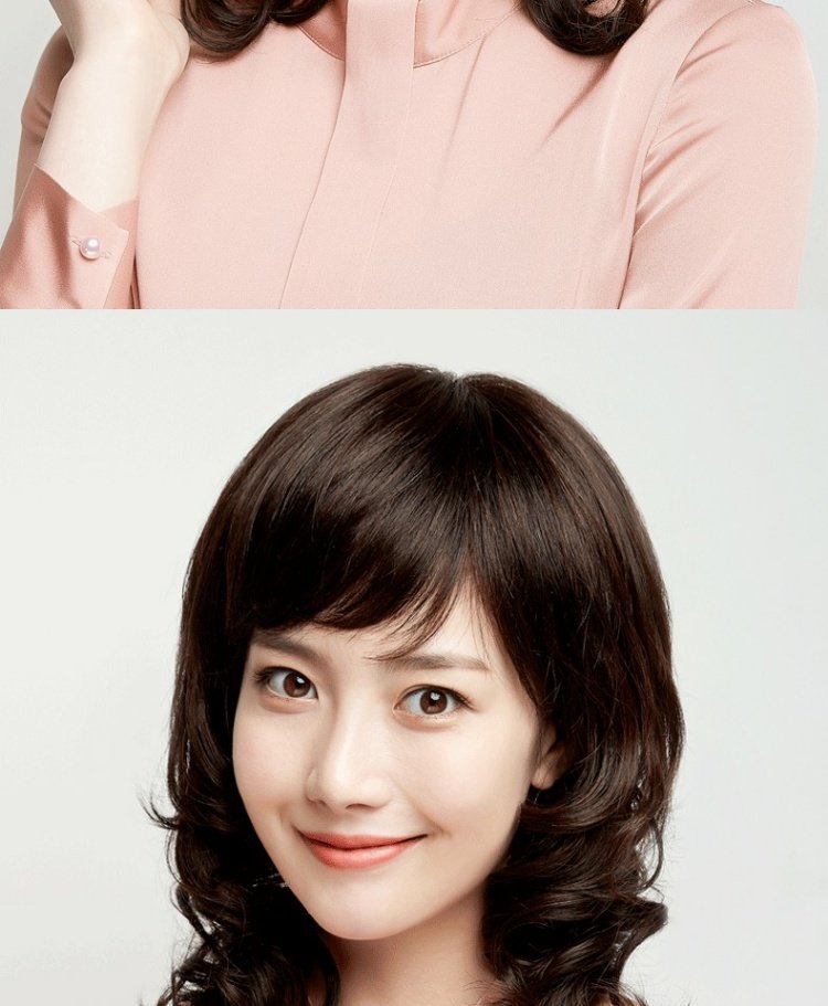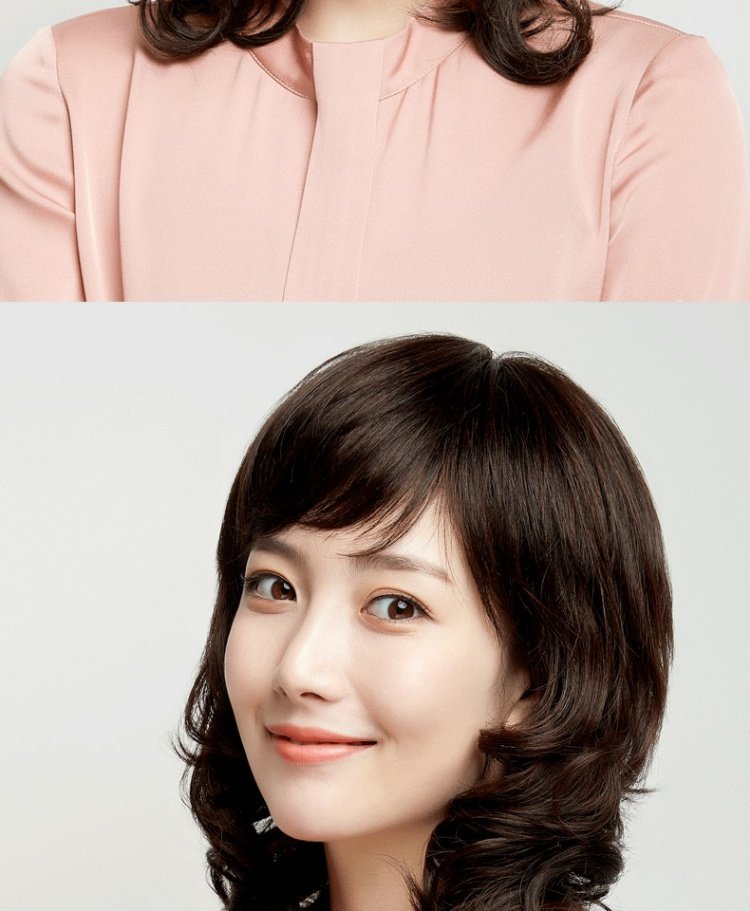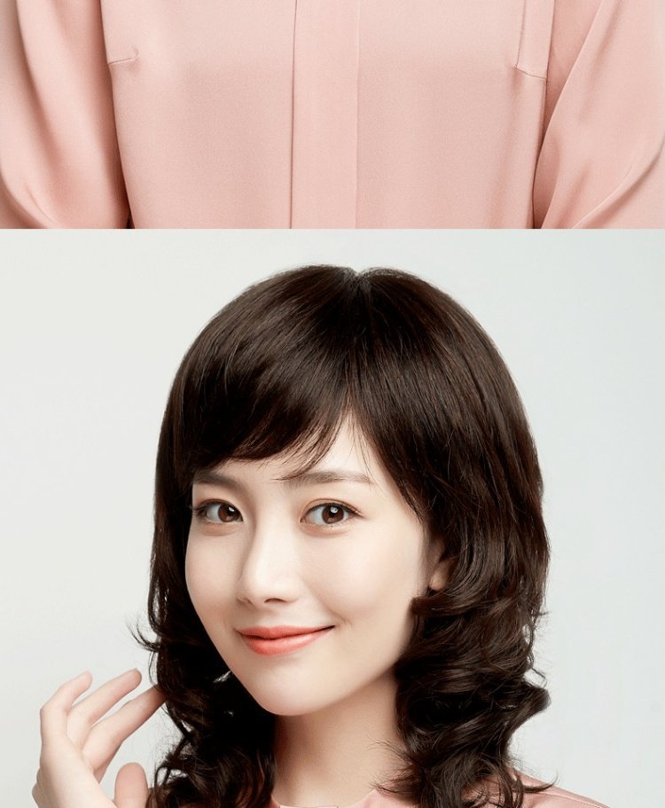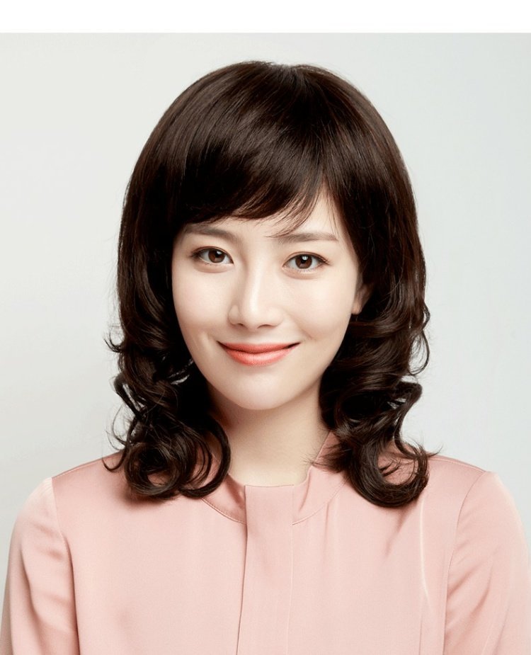 かつら全髪型全真髪通気梨花パーマ母のかつらカバー女性気質斜め前髪カバー