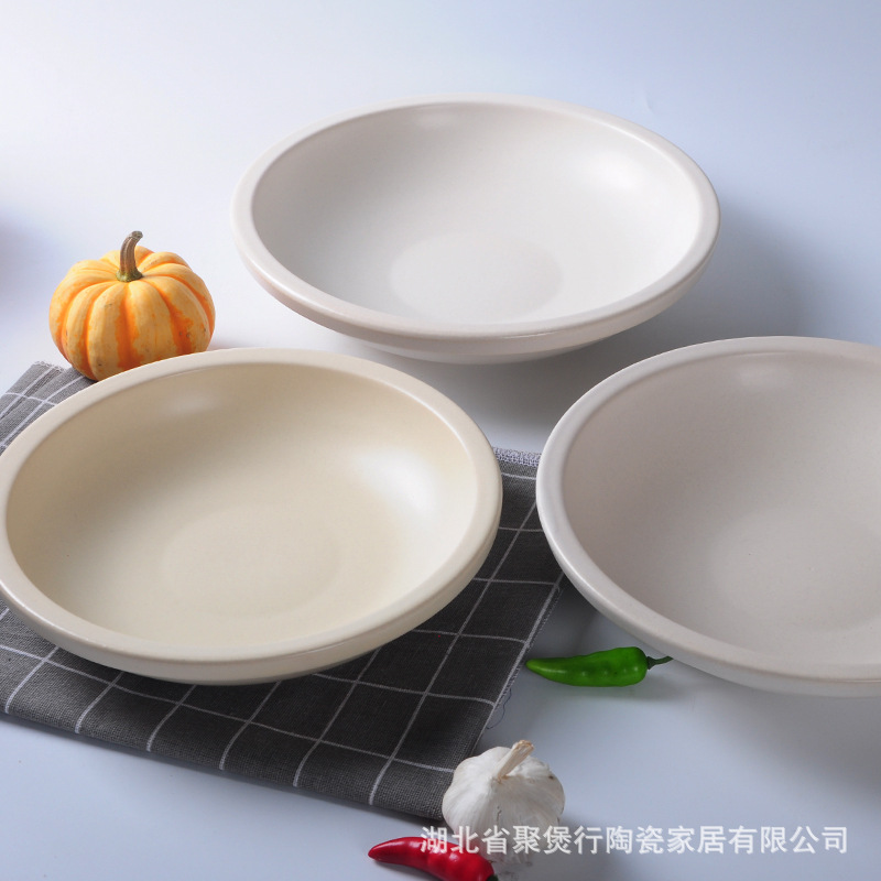 ホテル専用2色陶磁器特浅鍋乾燥鍋大口径商用土鍋明火高温浅口乾燥鍋
