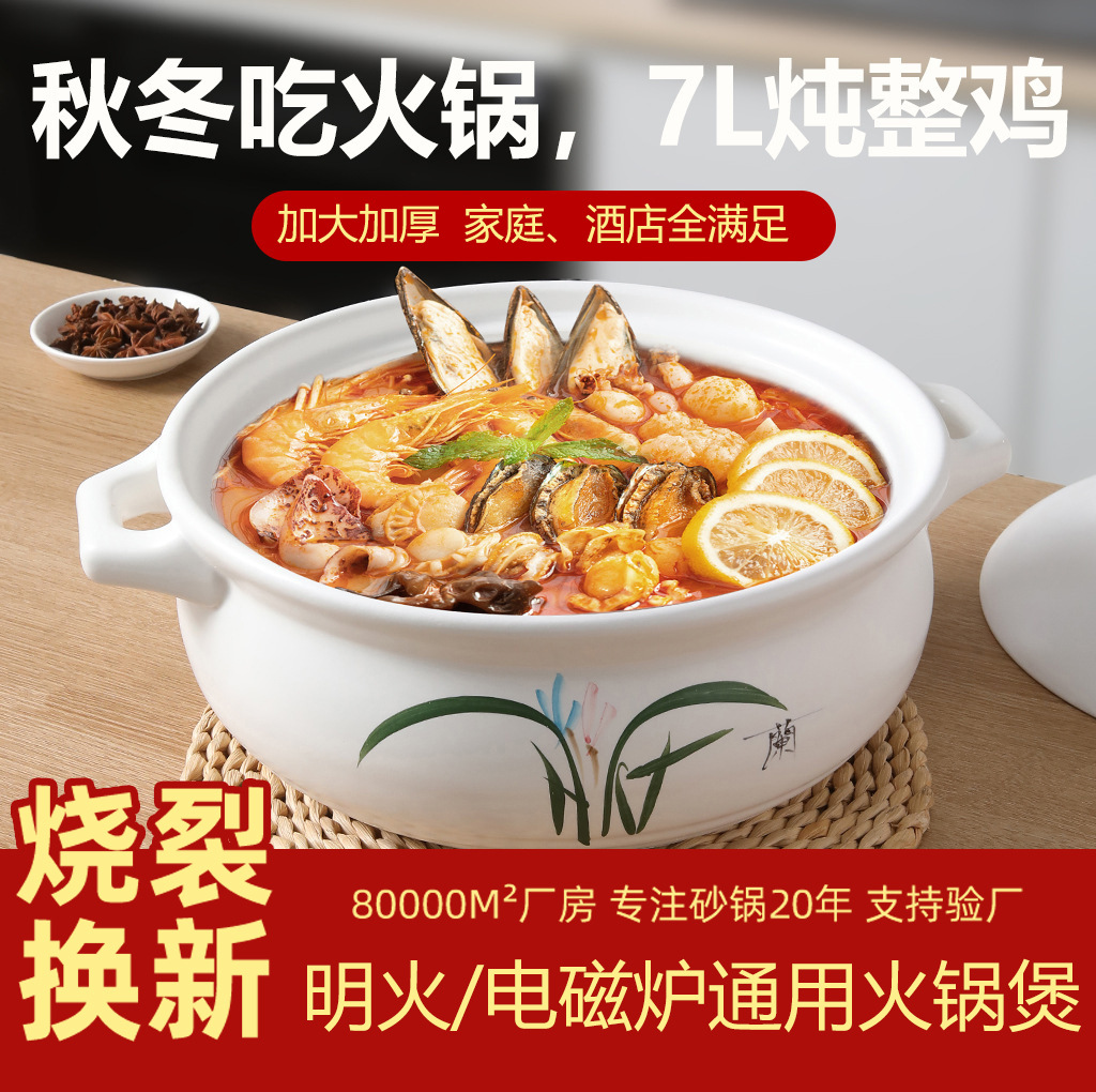 秋冬7l鍋鍋の大容量の土鍋のスープの商用電気の陶磁器の炉のガスコンロの乾燥防止の家庭用陶磁器の土鍋