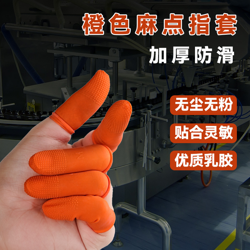 オレンジ色の麻点滑り止め指カバー使い捨てゴム耐摩耗性厚いラテックス保護ポイント