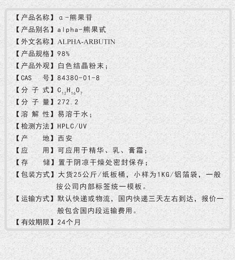 Α-熊果配糖体99% 化粧品原料アルファ-熊果配糖体100g/袋天雷供給スポット郵便