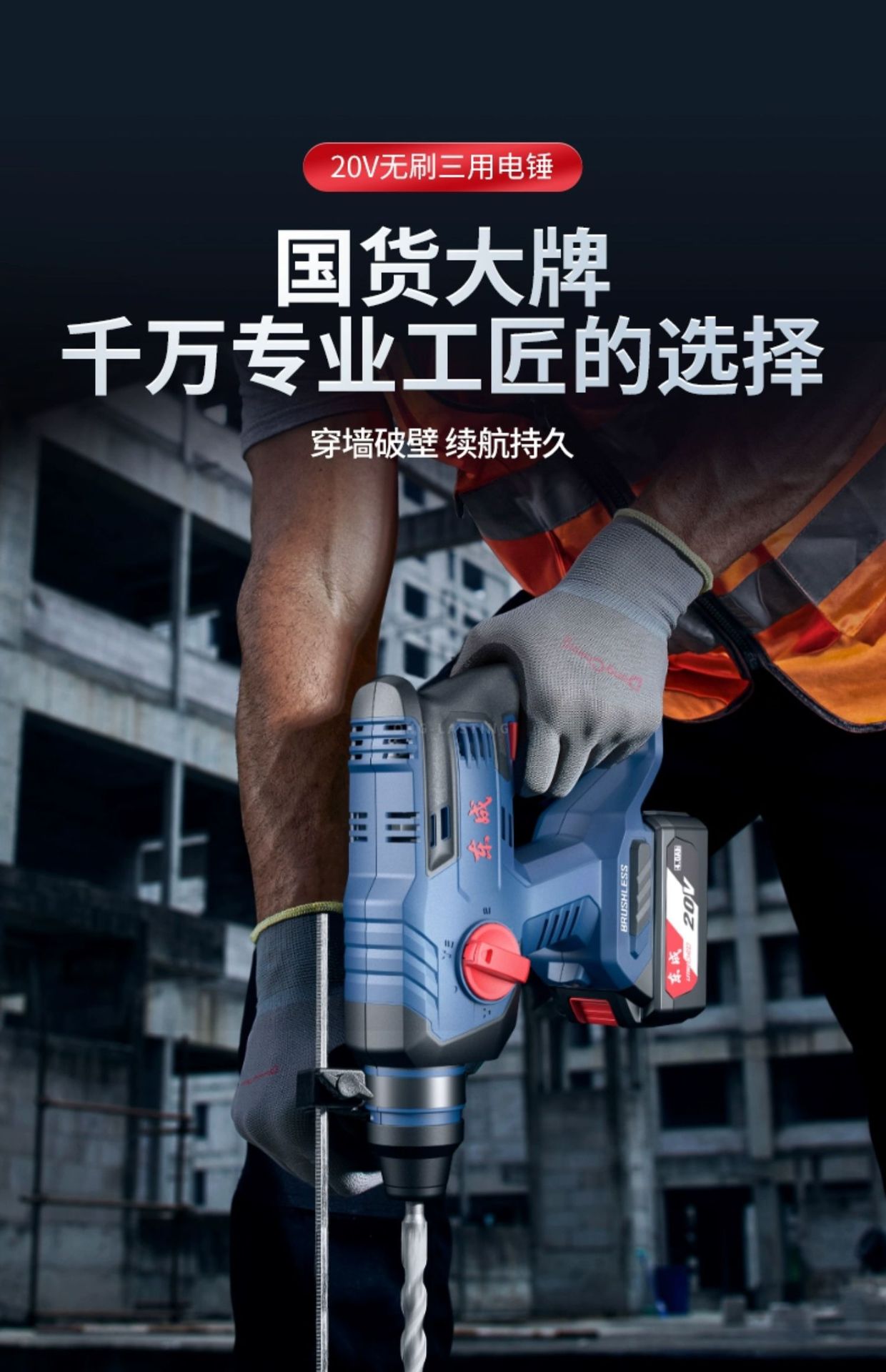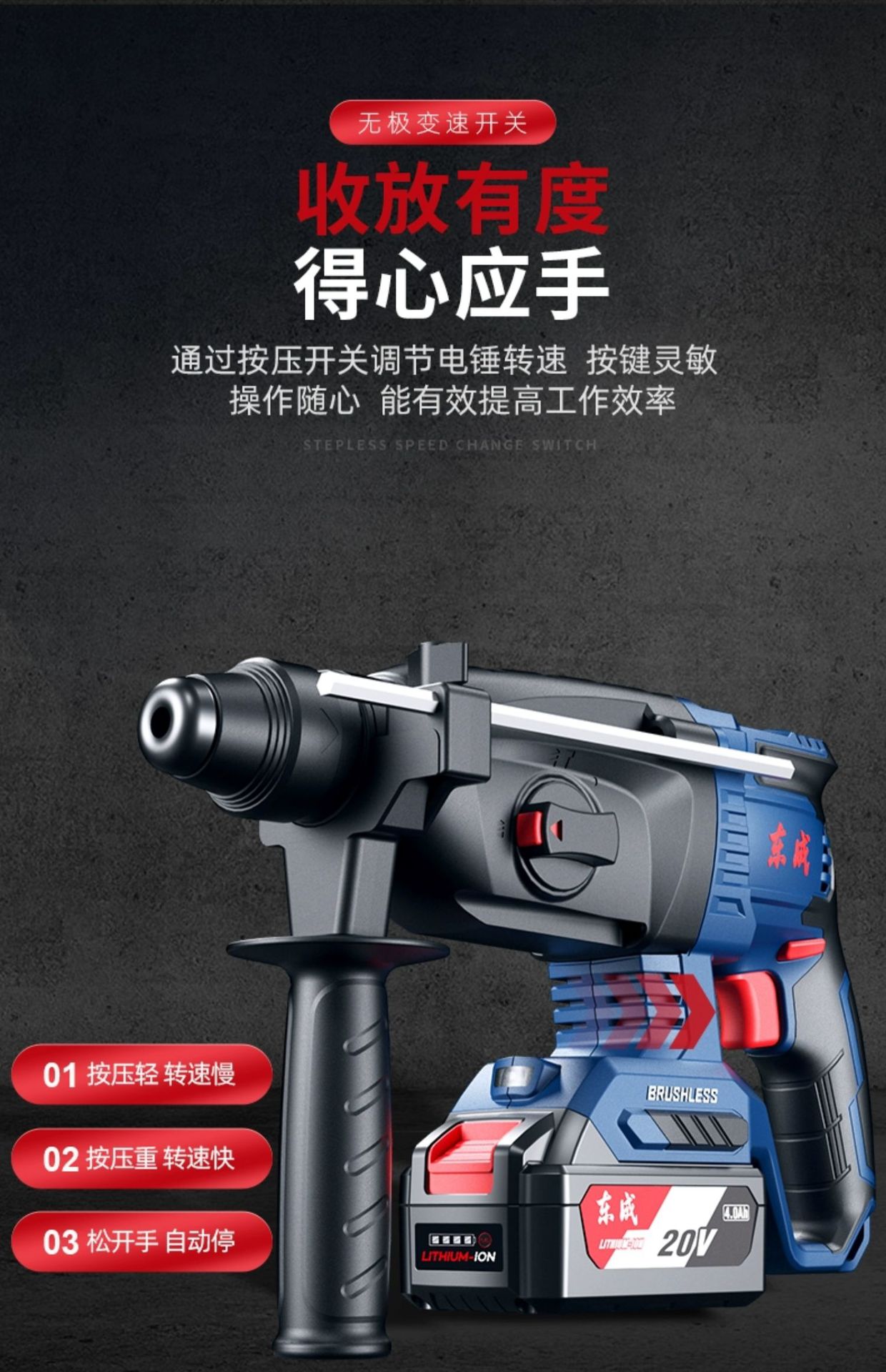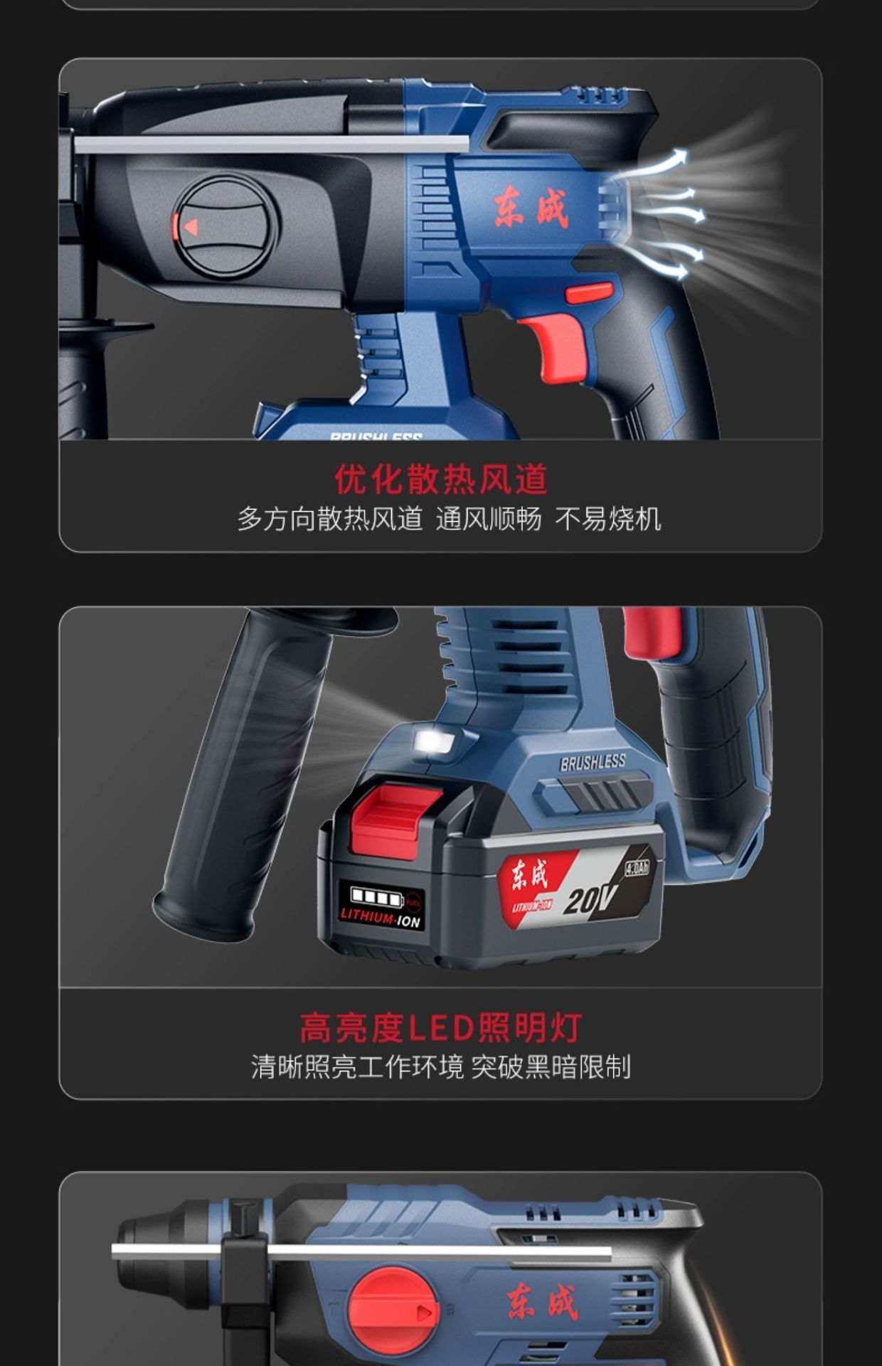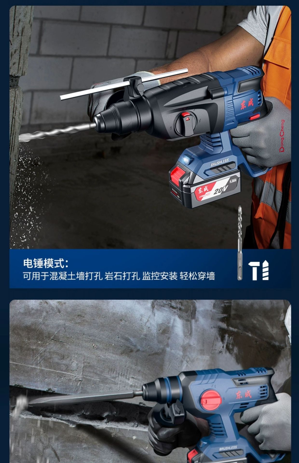东成电锤锂电无刷三用充电式冲击钻大功率工业级混凝土东城电锺