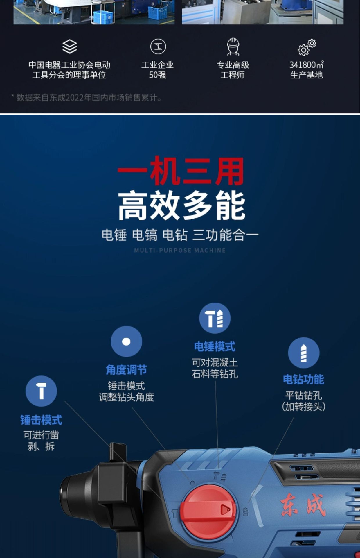 東成新型02-26三用充電ハンマーのつるはしドリル多機能大出力衝撃東成ハンマー重型