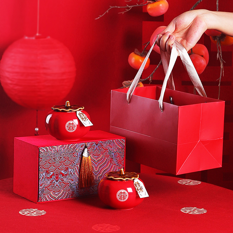 結婚婚約喜糖箱創意柿造形貯蔵缶陶磁器プレゼントプレゼントお返し包装高級