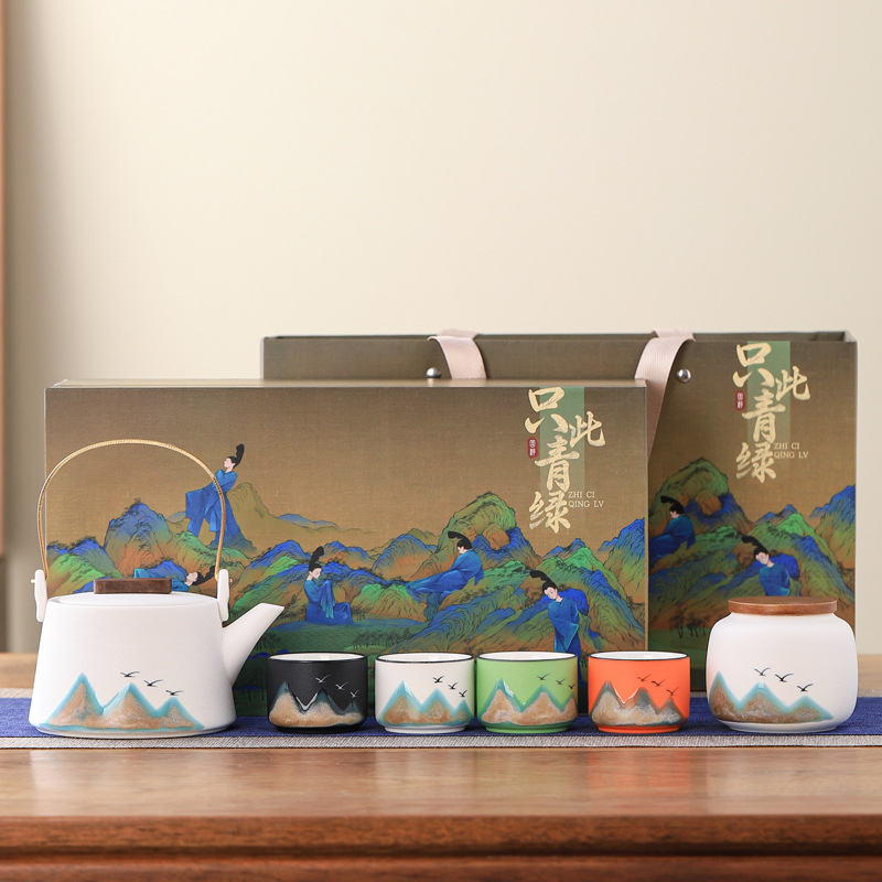 この青緑提梁壺側だけで壺千里江山陶磁器旅行茶器セットビジネス活動プレゼントロゴ