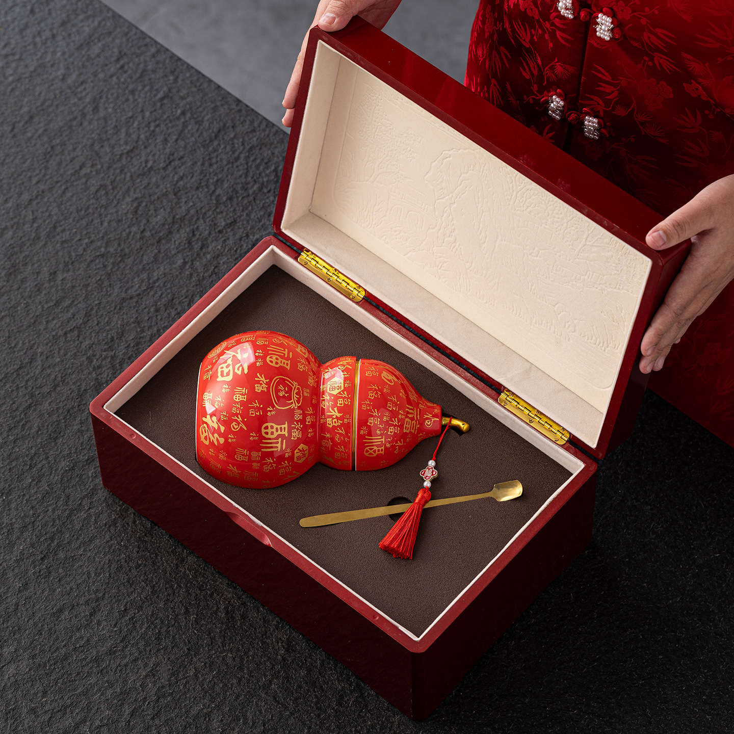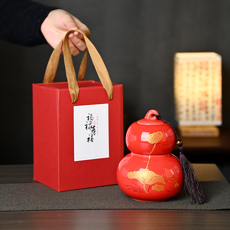 福禄瓢箪陶磁器茶葉缶密封缶ギフトボックス大缶大サイズ中号赤いプレゼントお土産カスタム大