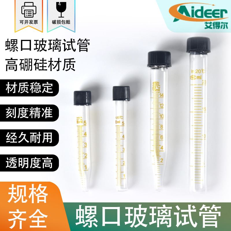 | 品名 | 玻璃螺口试管 | 规格 | 5ml/10ml/15ml/20ml/25ml/30ml/50ml |