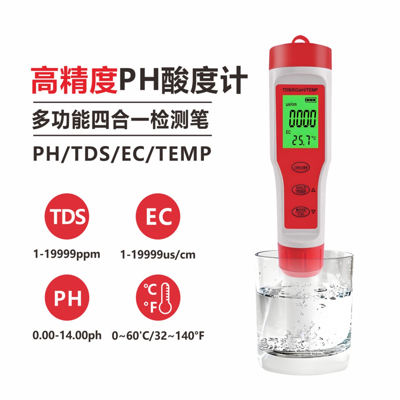 跨境水质检测笔四合一多功能ph计水质酸碱度便携式家用高精度检测