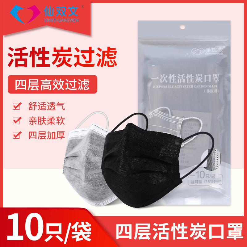 仙双文10匹の精包装マスクは4層の活性炭使い捨てマスクを厚くして、メルトブローン布マスクを含んで卸売りします。