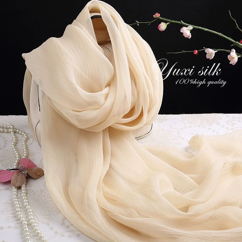 米色纯色桑蚕丝长款真丝丝巾披肩女纱巾春秋冬夏季丝绸围巾爆款