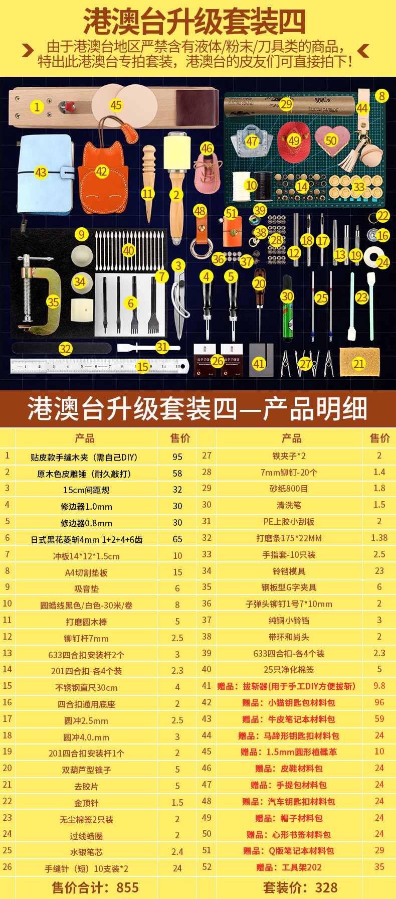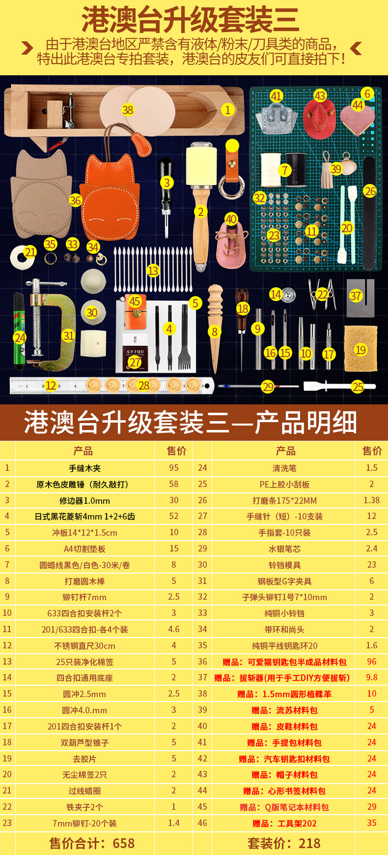 型番 基礎特恵セット,初心者向けのアップグレードセット,初心者plusアップグレードセット,専門セットをアップグレードします。,アップグレード専門パッケージ2,香港・マカオ・台湾バージョン-セット3,香港・マカオ・台湾バージョン-セット4,豆丁包材料を買い替えて包む,革製品体験セット,革製品セット