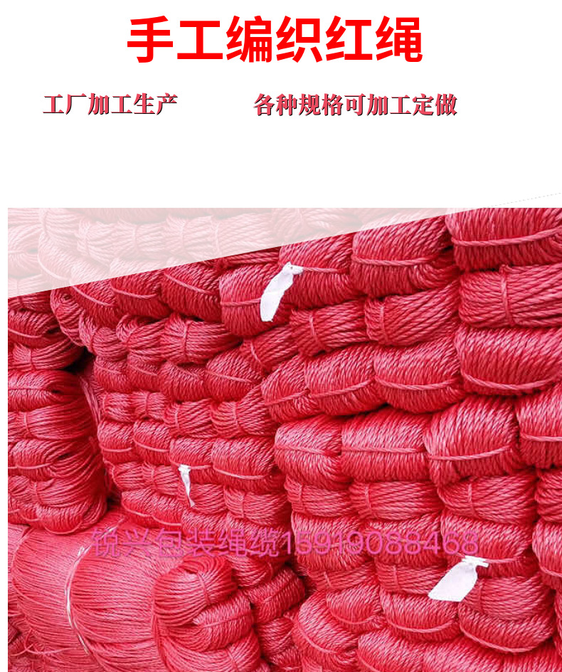 4メートル5メートルの赤いロープの手のロープのプラスチックの包みのロープのポリプロピレンの編み物のロープの3本のロープのトランクのロープ