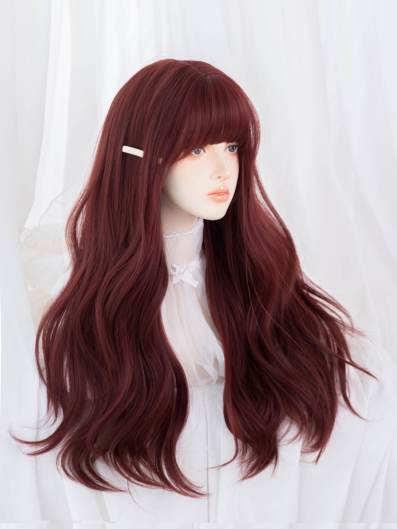クロスボーダーかつらの女性の長い髪の波の長いカールlolitaワインレッドの全頭カバーのリアルなファッションネットの赤いかつら
