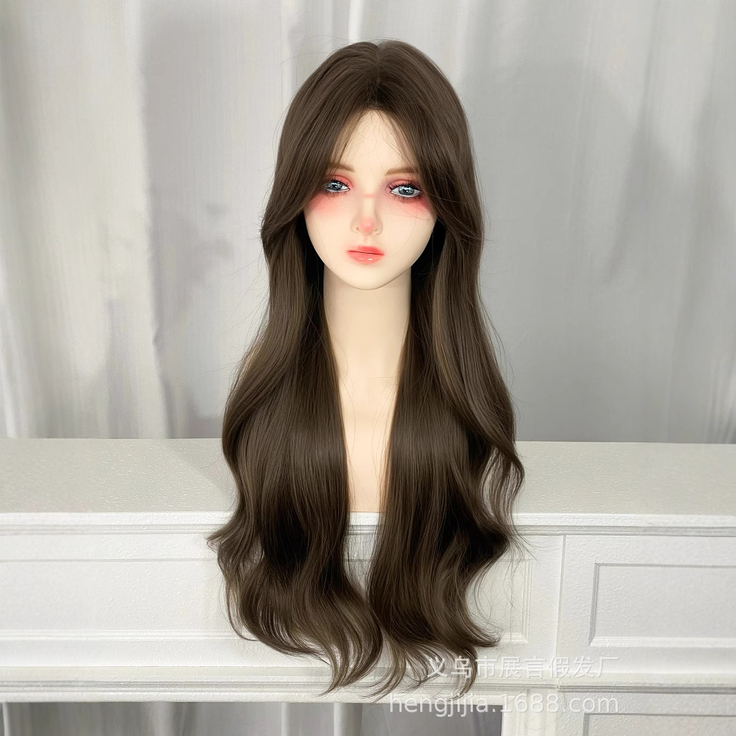 クロスボーダー卸売化学繊維かつら欧米女性ロングヘア大波巻き頭カバーWigつや消し高温糸源工