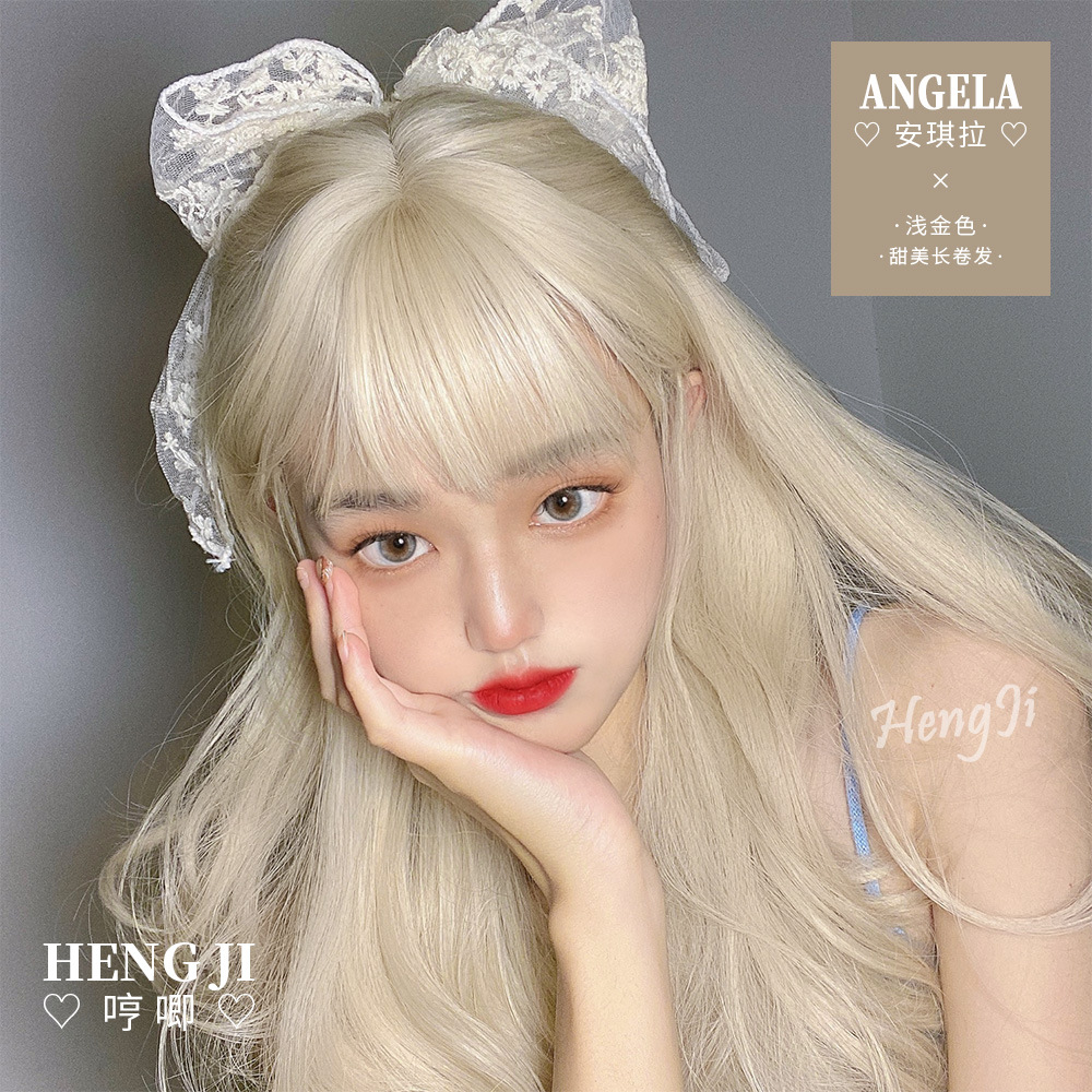 クロスボーダーかつらの女性の長い髪の波の金色の長い巻き髪lolitaネットの赤い日は常にリアルな丸い顔jkのかつらのセットです。