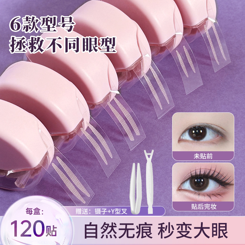 二重まぶた貼り丸ケース120枚オリーブ型網紋自己粘着高粘着二重まぶた自然見えない美目貼り卸売り