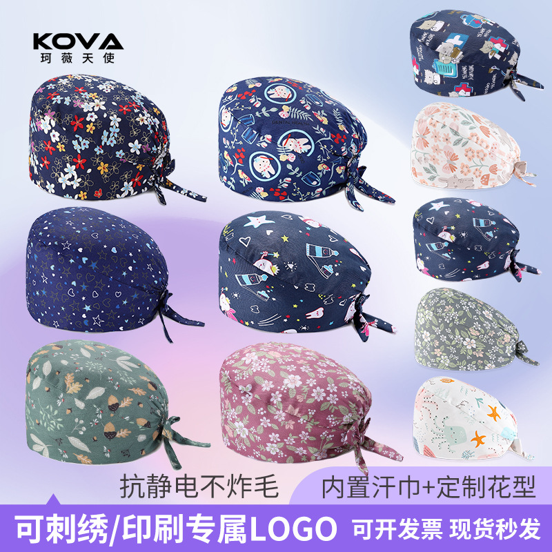 手術帽純綿プラスバックル吸汗タオル心電図刺繍クロスボーダー欧米看護師帽プリント包頭帽子医生帽