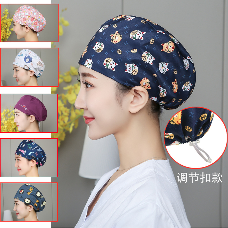 手術帽蓬蓬蓬帽加ボタン調節可能看護師純綿プリント手術室漫画包頭防塵包頭帽子
