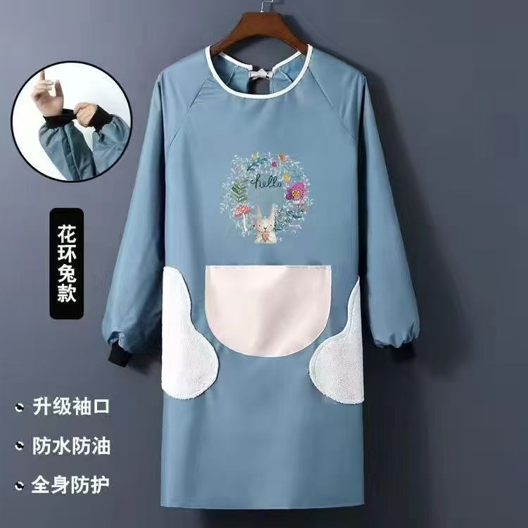 长袖可擦手围裙家用厨房罩衣秋冬防水防油加厚围裙厨房工作服