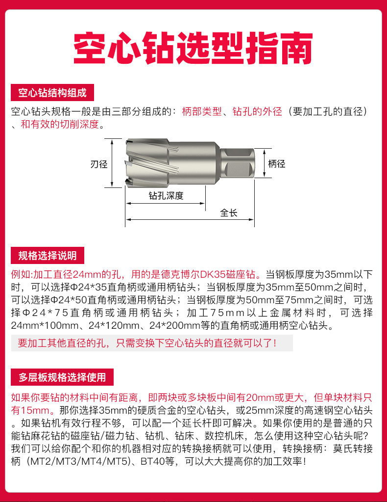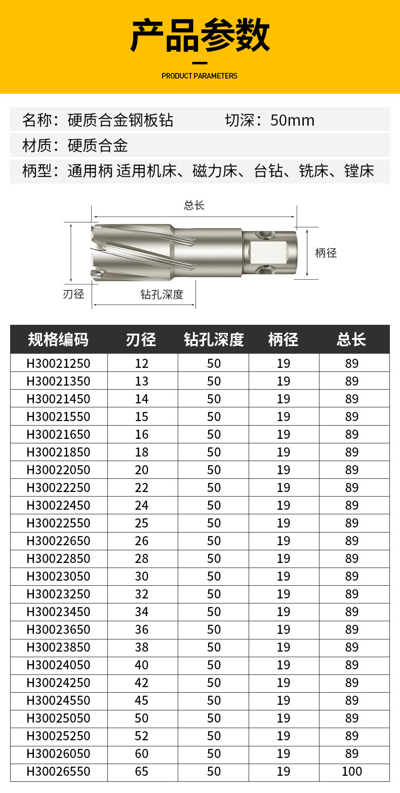 上海豪50mm中空ドリル共通柄合金磁力ドリル深鋼板ドリル金属穴開け器