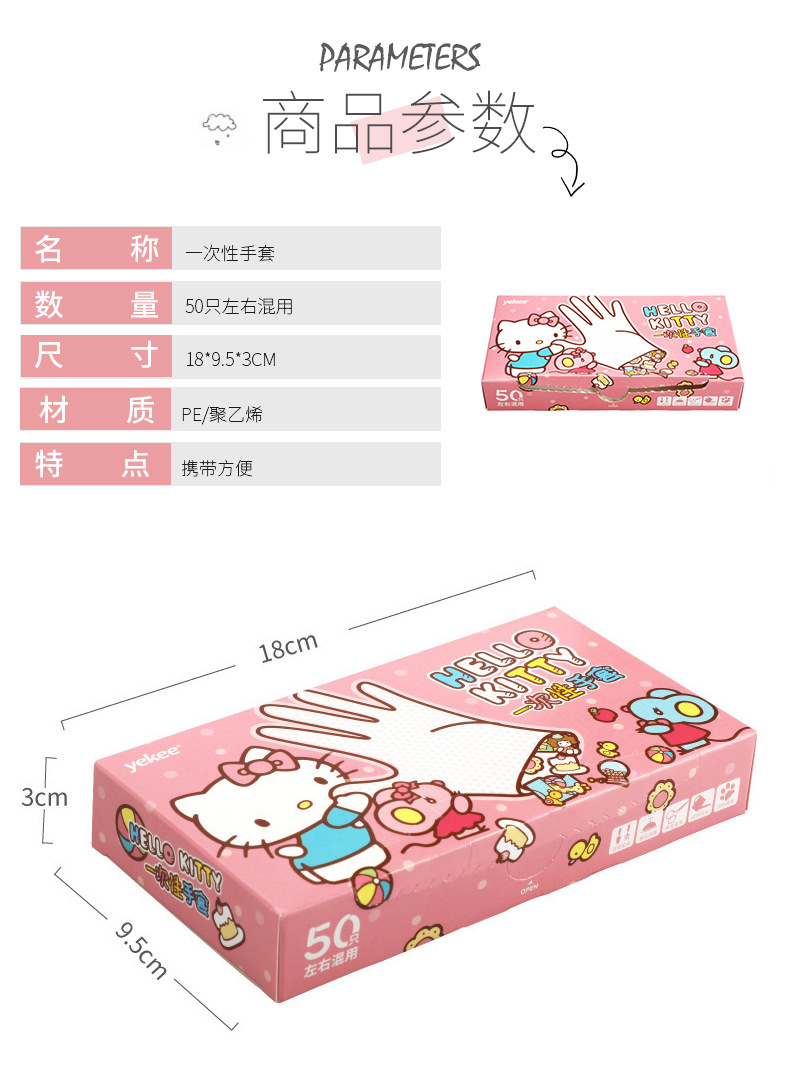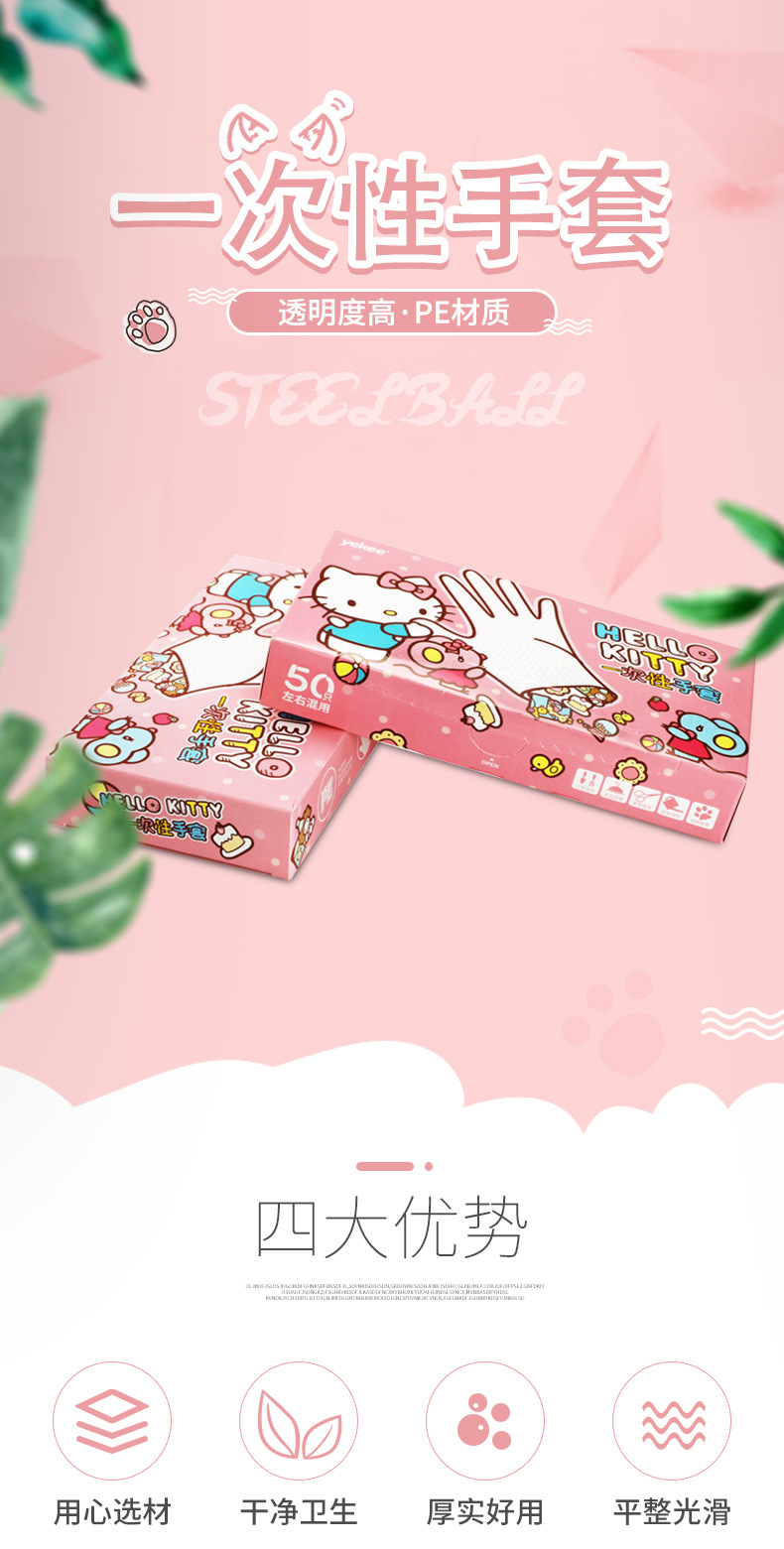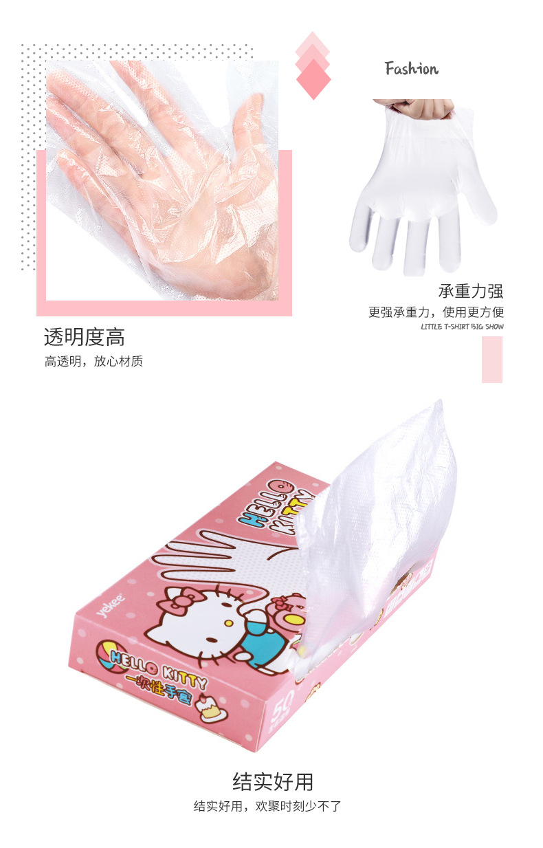 箱入りハローキティ宜潔使い捨て手袋食品級使い捨てpe手袋使い捨て手袋