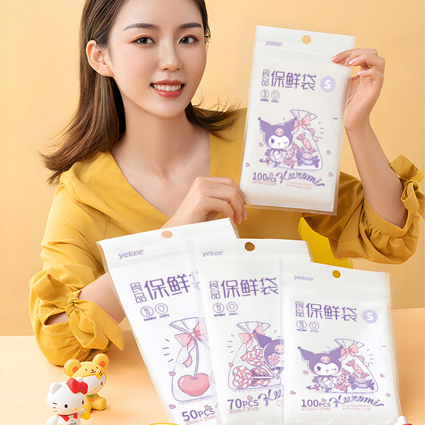 ハローキティ密封袋食品袋ダブルチェーン透明自己密封袋家庭用保存袋冷蔵庫収納分類