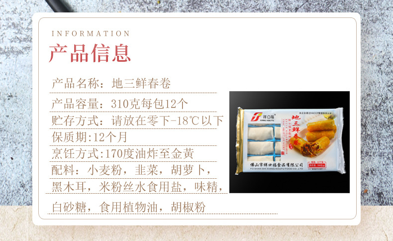 祥口福地三鮮春巻き310g素春巻き揚げ春巻き広式朝茶菓子冷凍食品卸売り