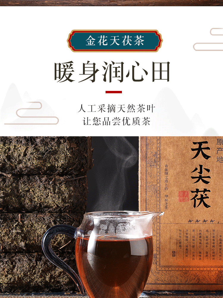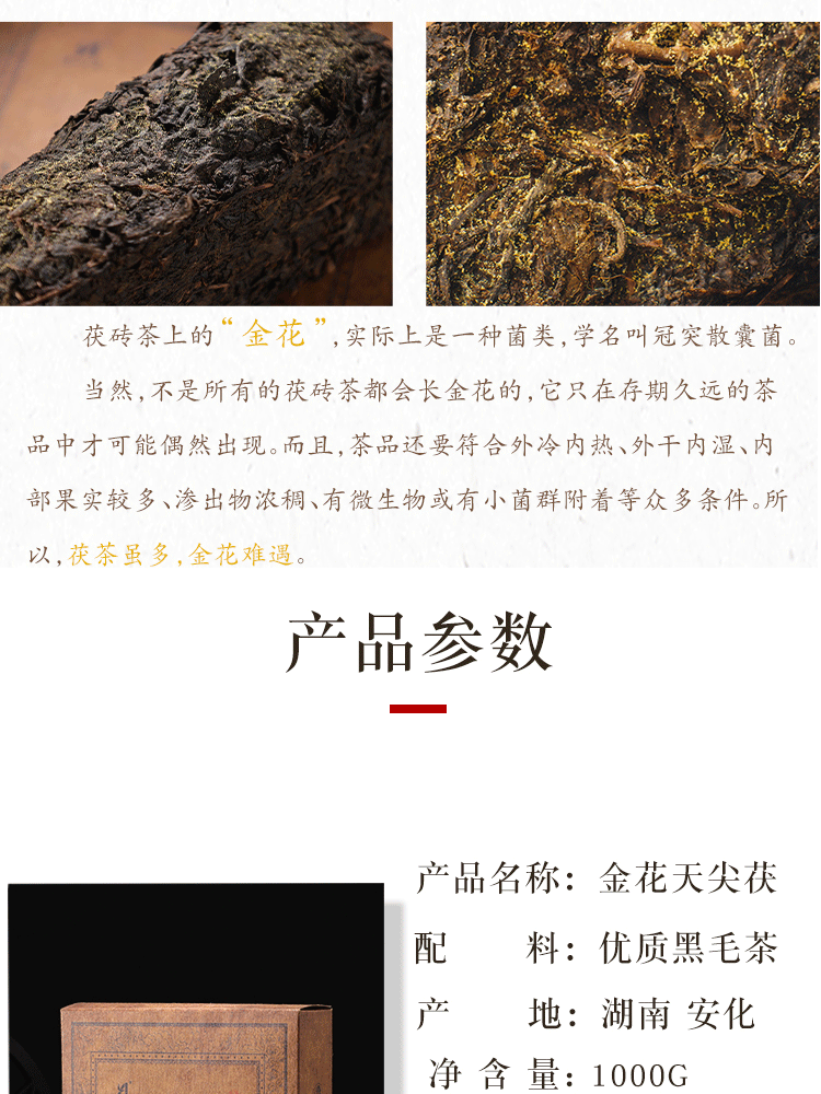 安化黒茶黒茶湖南安化金花茯煉瓦茶天尖茯煉瓦茶金道茶葉2斤